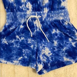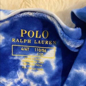 Polo Ralph Lauren stylish blue tie-dye romper for kids. Perfect for casual outings and playtime. Features elastic waist and red signature embroidered pony. In excellent condition. Worn once. Size 4/4T