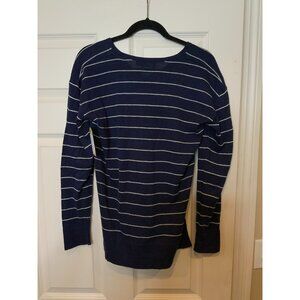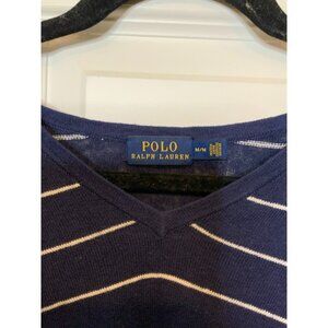Polo Ralph Lauren Blue & White Striped V-Neck Linen Blend Sweater, Size M
