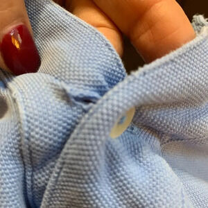 pre-owned good condition - no stains - see stretching of bottom button on placket - can not be seen when buttoned - zoom pics to see condition