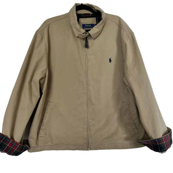 Polo Ralph Lauren Bomber Jacket Mens XXL Beige Blouson Chin Strap