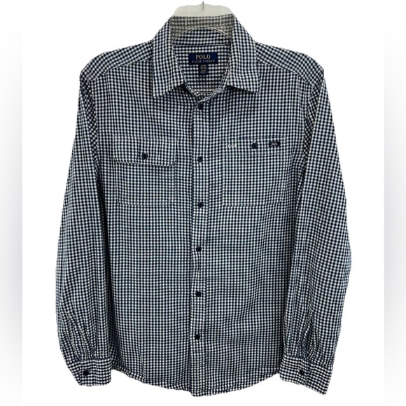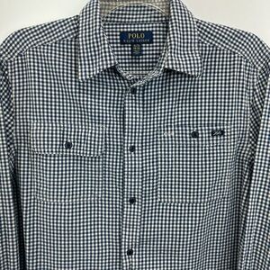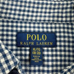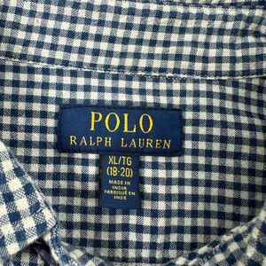 Polo Ralph Lauren Boys Button Down Shirt XL 18-20 Dark Blue White Check Cotton