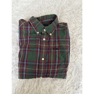 Fantastic, classic green, red plaid design button down. Vintage style, excellent quality and perfect colors for fall, holidays etc. Normal signs of typical, gentle wear, wash & use from two boys. No rips, stains tears. Great polo item!