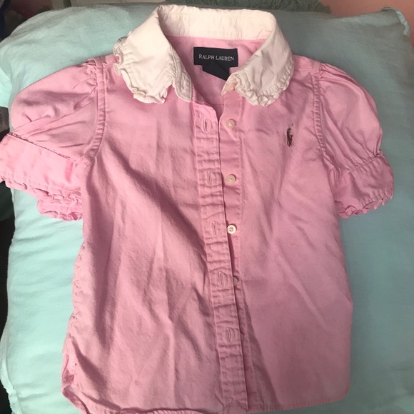 Pink Collar Shirt 2t, White Button down shirt 24 months and floral leggings 2t. All Ralph Lauren