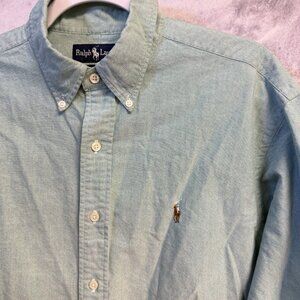 Polo Ralph Lauren Button Down Shirt Mens 17-36 Light Green Long Sleeve