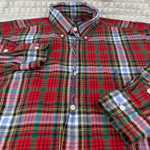Polo Ralph Lauren Button Down Shirt Men's Large Red Plaid Brushed Oxford Blake