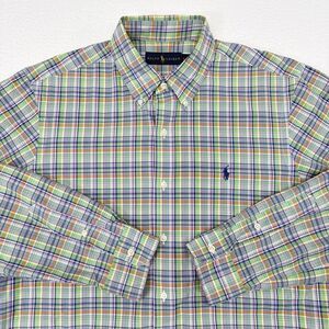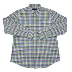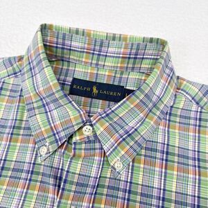 Polo Ralph Lauren Button Down Shirt Size Large Blue Green Plaid Casual Summer
