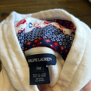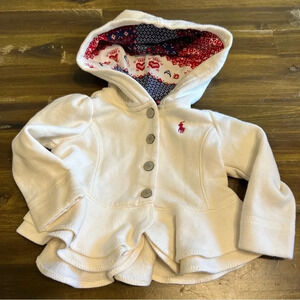 Polo Ralph Lauren Button Front Sweater Jacket Hooded Ruffle Peplum Cream 9M Pony