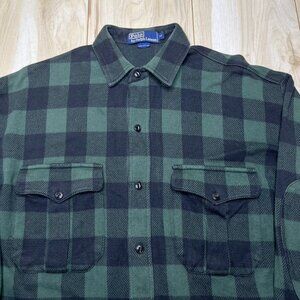 Polo Ralph Lauren Button Up Mens Green Plaid Spread Regular Shirt Pockets Medium