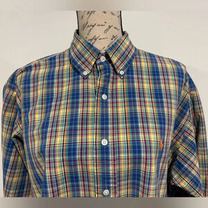 Polo Ralph Lauren Button Up Rainbow Multicolor Plaid Shirt Men’s size Large