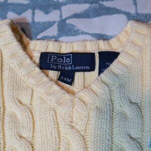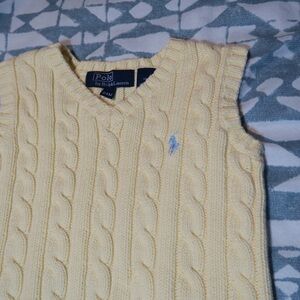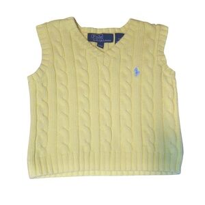 Yellow knit vest by Polo Ralph Lauren, cable knit and v-neck design, cotton. Great preloved condition, first picture shows a shadow.