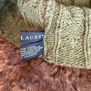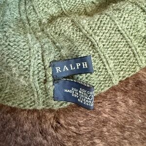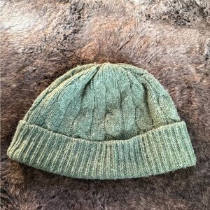 Polo Ralph Lauren Cable Knit Wool Beanie Green with Orange Pony