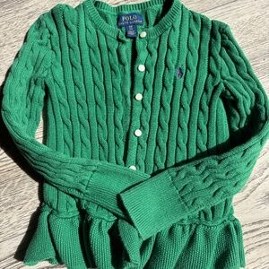 Polo Ralph Lauren Cable-Knit Cotton Peplum Cardigan Green Size Small 7 Girls