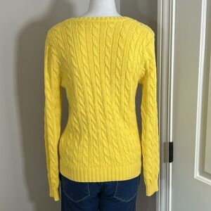 Polo Ralph Lauren Cable-Knit Cotton VNeck Sweater Yellow Pony Purple Sz L