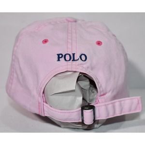 For sale is this Polo Ralph Lauren light pink baseball cap with the blue pony logo on the front. This hat looks authentic. See the tags on the 6 & 7 photos. There is some light fading on the hat. I see a small light spot on the one side of the hat shown in one of the last photos. See all the photos prior to purchasing.