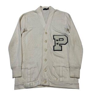 Polo Ralph Lauren Cardigan Mens S Ivory P Wing Varsity Letterman Sweater Preppy Old Money