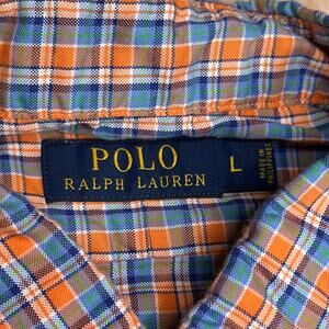 Polo Ralph Lauren Checkered Plaid Button Up Shirt Long Sleeve Blue Orange Preppy