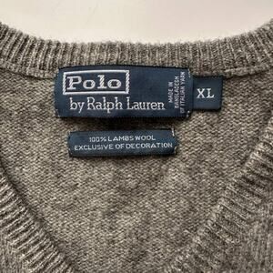 Polo Ralph Lauren Classic 100% Lambswool V Neck Gray Sweater Men XL