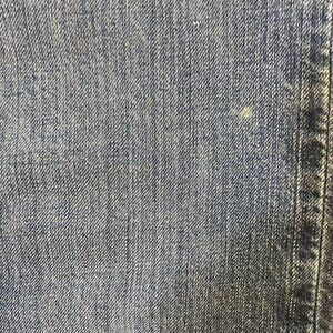 No rips or holes. One small spot on the leg. Wear on hem. See photos.
