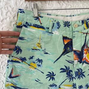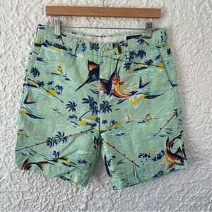 Polo Ralph Lauren Classic Fit Linen Cotton Blend Tropical Sword Fish Shorts 32