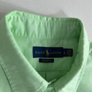 Polo Ralph Lauren Classic Fit Palm Tree Button Down Shirt Men Size Large Green.