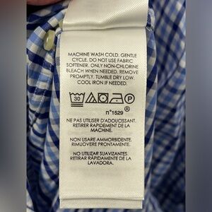 Blue/White plaid with navy blue polo logo embroidered on left chest