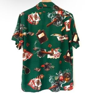 The Poker Button-Up features an all-over graphic of all your gaming staples, from the deck of cards to the cigar.