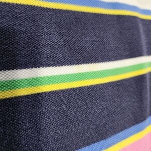 •Multicolor horizontal stripes: navy, pink, light blue, green, and yellow