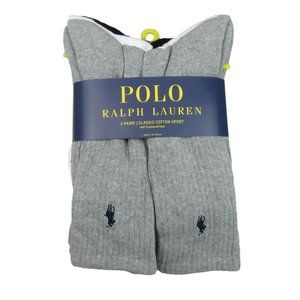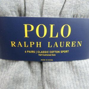 Polo Ralph Lauren Classic Sport Cushioned Crew Socks 6 Pack Mens Size 6-12 NEW