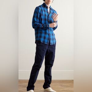 In double-faced cotton, this checked shirt features a contrasting plaid interior that's visible when the sleeves are rolled up.