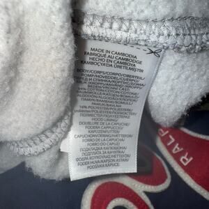 Polo Ralph Lauren Colorblock Hoodie Sweater in Gray/Navy/Camo Size Kids Large (14/16). In excellent used condition; Slight stain on one arm front of jacket. Hardly visible (see image 4).