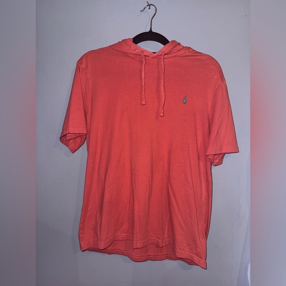 Casual coral hoodie t-shirt by Polo Ralph Lauren. Soft fabric with iconic logo. Ideal for everyday wear.