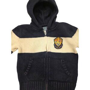 Polo Ralph Lauren Cotton Navy Sweater Preppy Knit Hoodie With Crest Patch 24M