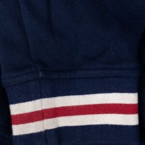 Classic Polo Ralph Lauren navy crewneck sweatshirt with bold phys. ed. graphic and athletic stripe trim. Soft waffle knit texture gives it that vintage gym sweatshirt feel without being too heavy.