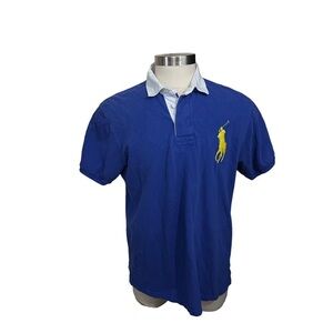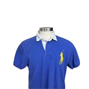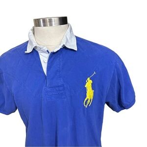Polo Ralph Lauren Custom Fit Men Blue & Yellow Big Pony SS Rugby Polo Sz XXL 2XL