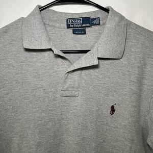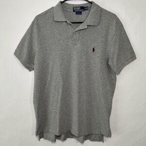 Polo Ralph Lauren Custom Fit Polo Shirt Mens Size Large Gray Red Pony Short Slv