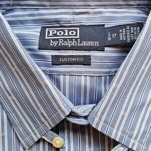 Polo Ralph Lauren Custom Fit Striped Dobby Shirt - Fall Blue/White - Size 17