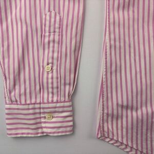 Men’s Size Medium fitted button down. Pink and white vertical striped with button down collar stays.