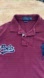 Ralph Lauren Polo Custom Slim Fit men’s size medium polo. Shirt features 100% maroon cotton mesh knit fabric; short sleeves with ribbed armbands with navy striped tipping; vented tennis tail; 2 button rugby placket; ribbed polo collar; signature navy embroidered big pony at left chest; and navy/white embroidered wordmark logo at right chest. A great looking shirt with a lot of details! Paire perfectly with shorts, jeans or chinos!. Great condition with no stains/holes. Refer to pictures for measurements (measurements are approximations). {Custom slim fit is a trim silhouette in between the classic fit and slim fit. Sleeve hugs the bicep. Tailored through the waist.}