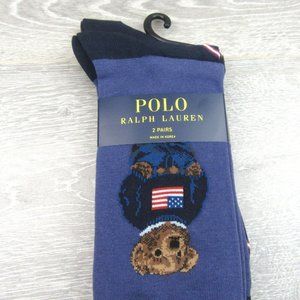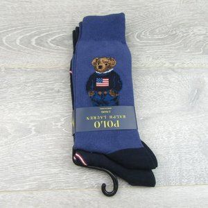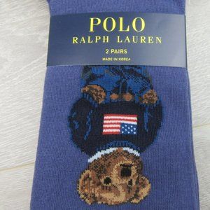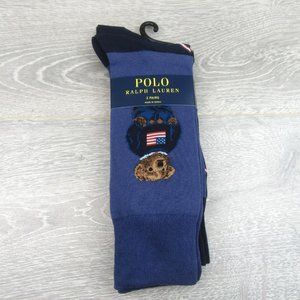 Polo Ralph Lauren Denim Bear & USA Flag Slack Socks (2 PAIRS) Navy Blue