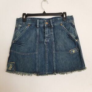 Polo Jeans Company Ralph Lauren Denim Distressed Button Fly Skirt
