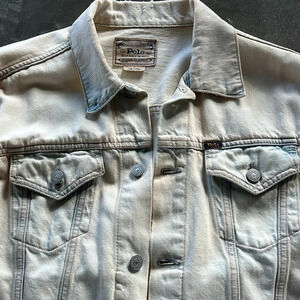 Ralph Lauren denim jacket. Classic and timeless style with a vintage wash. Worn for two seasons and in good condition overall. There are some dirty spots (see photos), but I believe they can be cleaned. Purchased originally at a Ralph Lauren store.