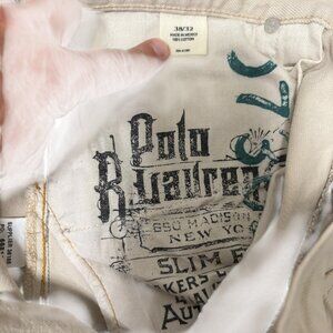 Polo Ralph Lauren Denim Jeans Mens 38 x 32 Beige Slim Fit Straight Leg