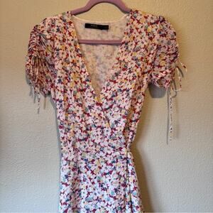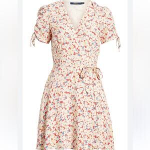 Polo Ralph Lauren Ditsy Floral Mini Wrap Dress Womens 4 Ruched Sleeve Casual