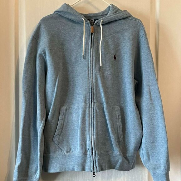 Polo Ralph Lauren Double Knit Full Zip Hoodie in a Heather Blue Men's size Large