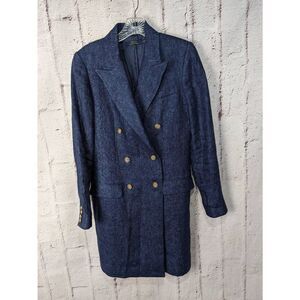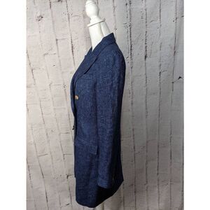 Polo Ralph Lauren Double- Breasted Linen Navy Chambray Long Blazer Coat Lightwei