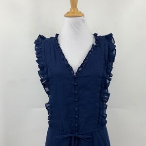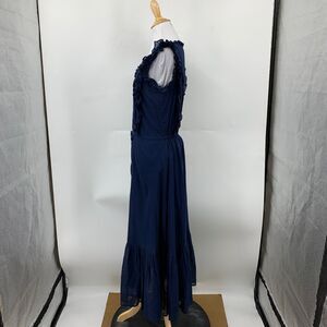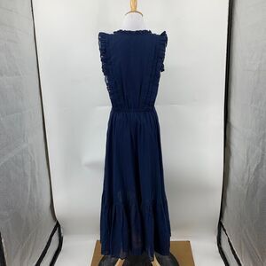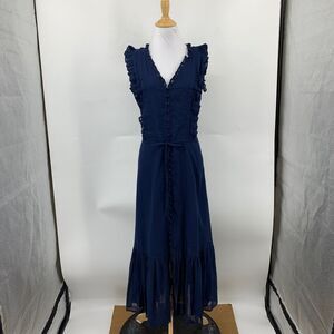 Polo Ralph Lauren Dress 0 Navy Lined Sleeveless Ruffled Button Front Tiered Maxi
