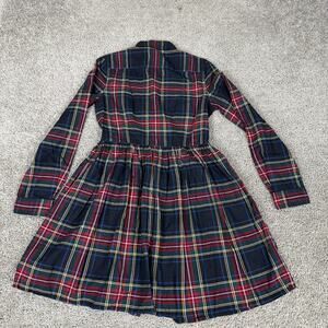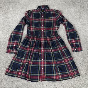 Polo Ralph Lauren Dress Girls 16 Navy Red Plaid Button Front Shirt Dress Cotton
