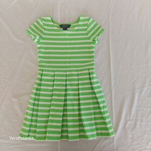 Polo Ralph Lauren Dress Girls Size 6 Green White stripes pleated Cute