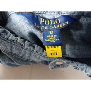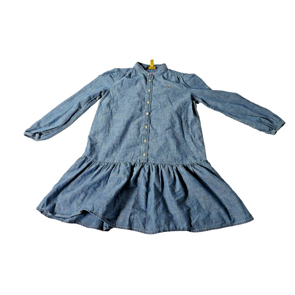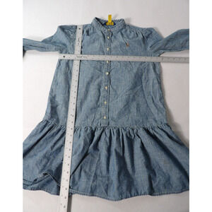 Polo Ralph Lauren Dress Girls Sz 12 Chambray Blue Drop Waist Button Up Cottage Core Long Sleeve