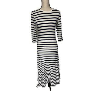 Polo Ralph Lauren Dress Navy Blue White Striped Waffle Knit Long Maxi S